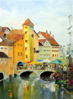 Pause sur le canal 40x80 cm